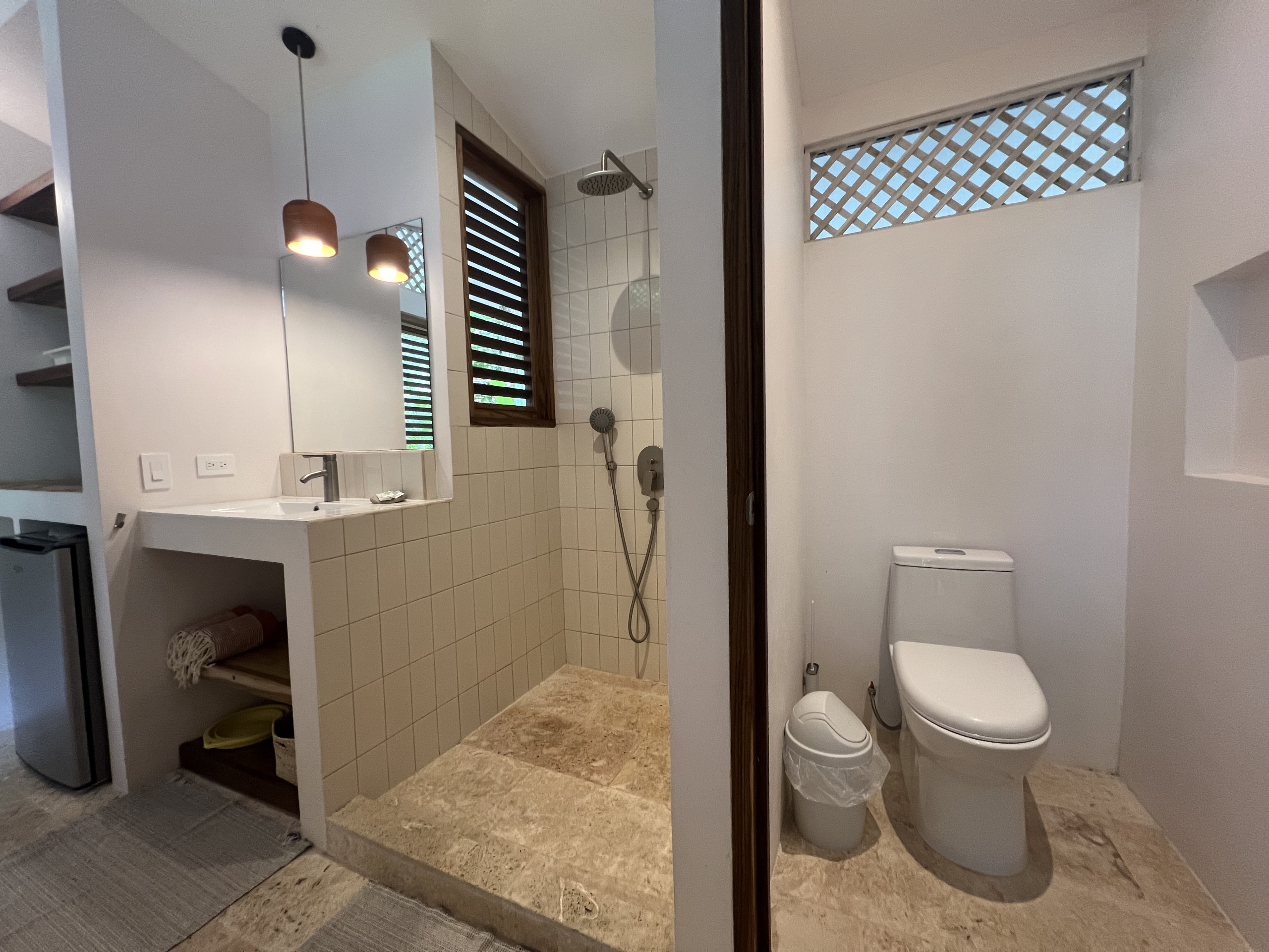 En el primer piso, encontrarás un área de cocina, sala y comedor de concepto abierto, ideal para socializar y preparar comidas. En la planta alta, una enorme terraza con un bar te espera con vistas panorámicas de la jungla, perfectas para tomar el sol o avistar vida silvestre como tucanes, lapas y monos. Con tres cómodas habitaciones y tres baños bien equipados, Casa Zorro asegura una estadía placentera para todos.