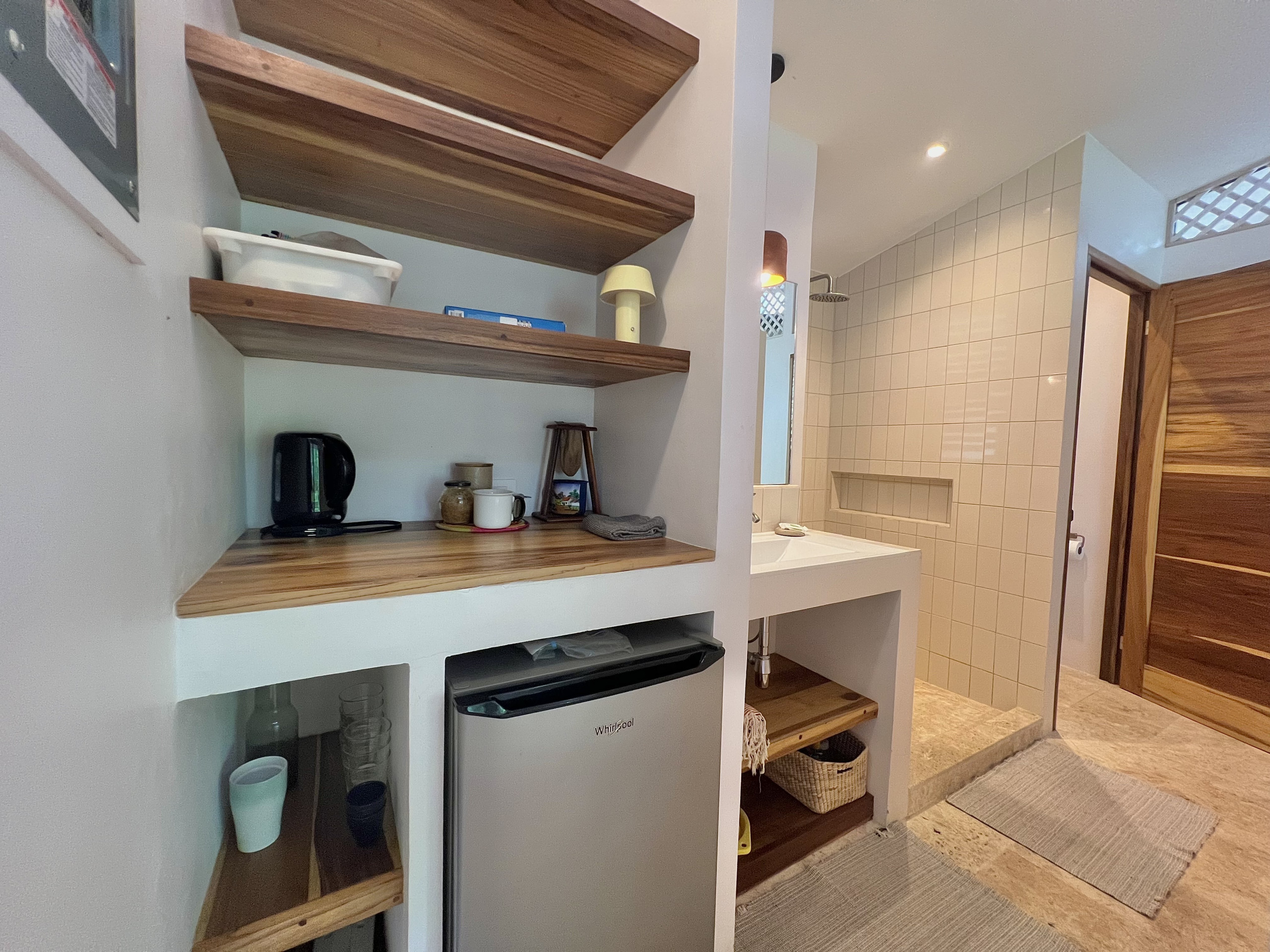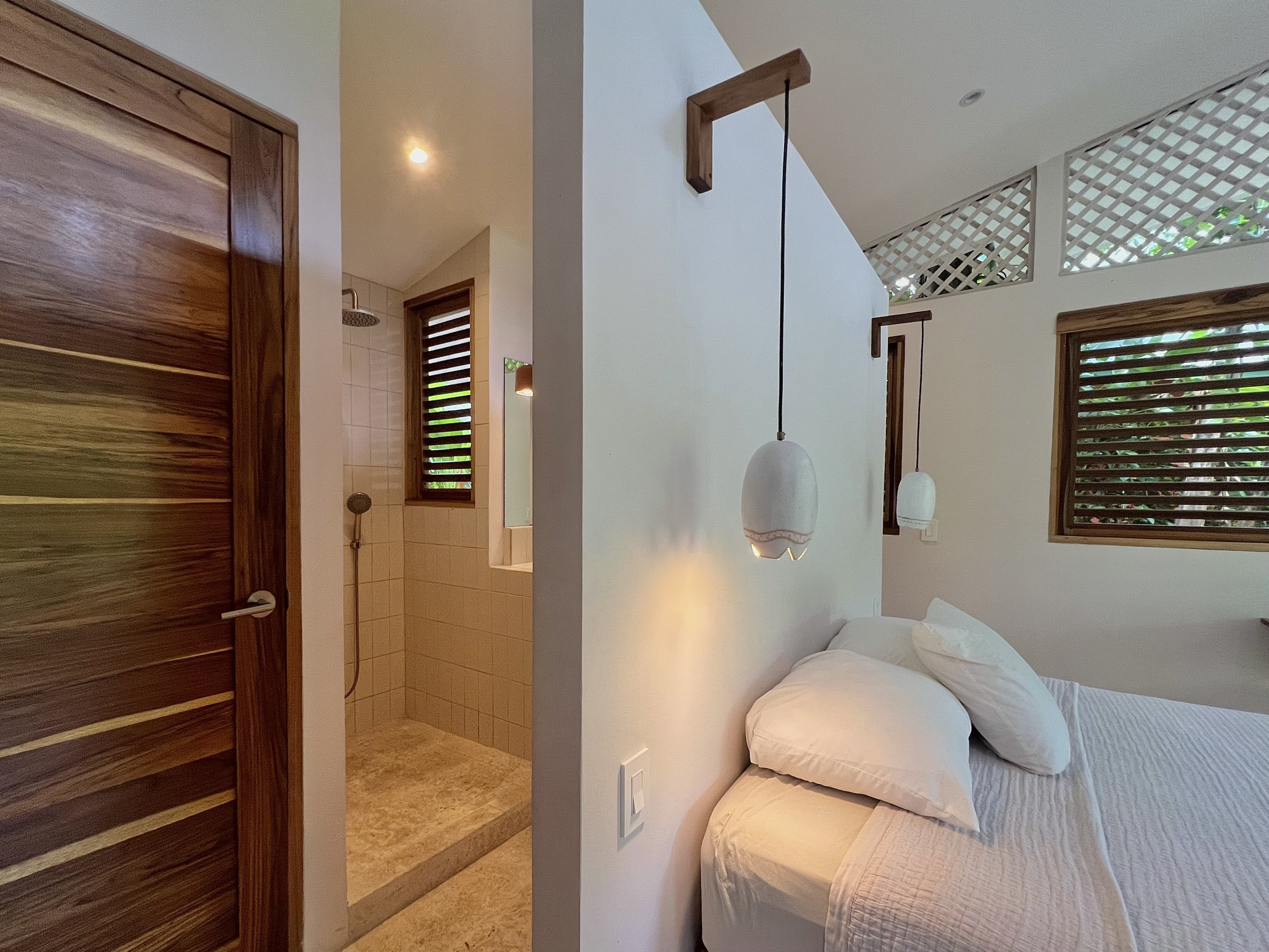 La casa ofrece comodidades modernas con internet de fibra óptica, una pequeña área de fitness y múltiples espacios de trabajo, perfecta para trabajadores remotos que quieren mantenerse conectados en el paraíso. A solo 10 minutos caminando se encuentra Playa Chiquita, una de las playas más hermosas de Costa Rica, donde la selva se encuentra con el mar y las piscinas de marea de coral invitan a nadar. Restaurantes, tiendas y un supermercado también están a poca distancia a pie, y la zona es muy amigable para bicicletas.