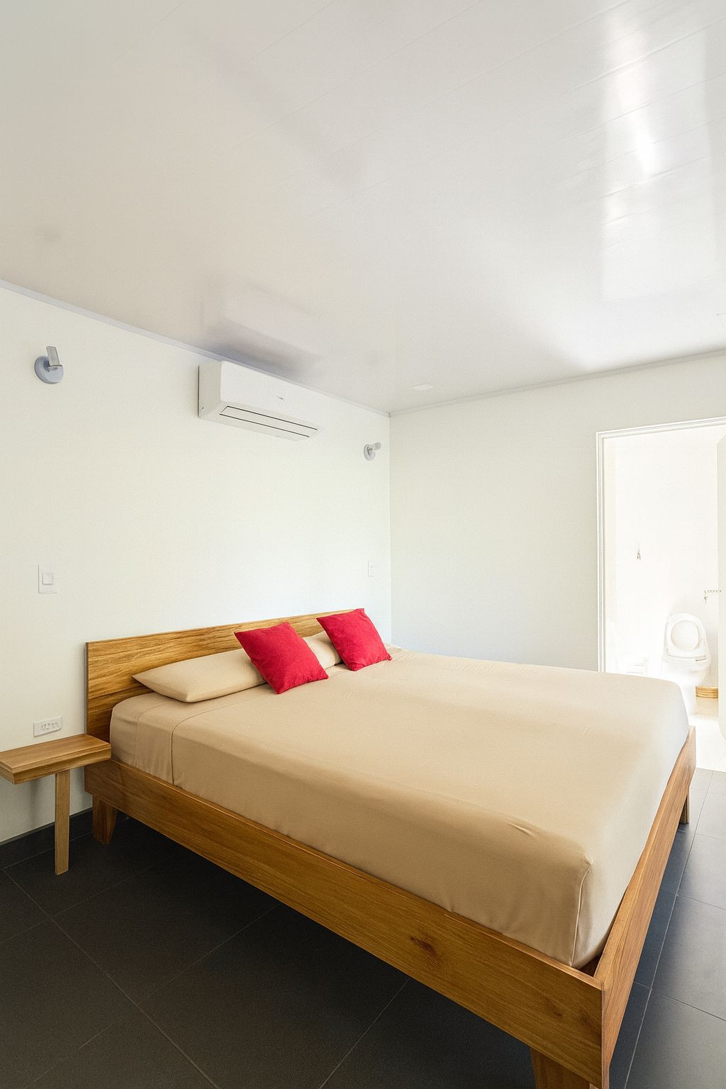 Hay dos habitaciones; una de ellas con dos camas queen size con televisor y closet, y en la otra habitación una súper fresca y hermosa litera individual, acompañada de un baño minimalista con algunos detalles en madera.