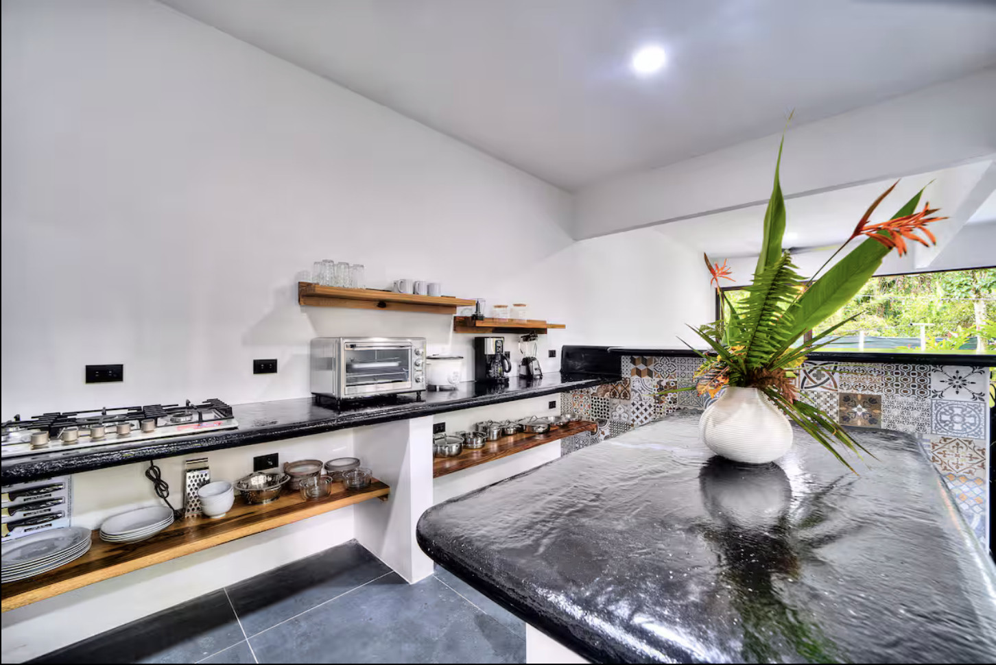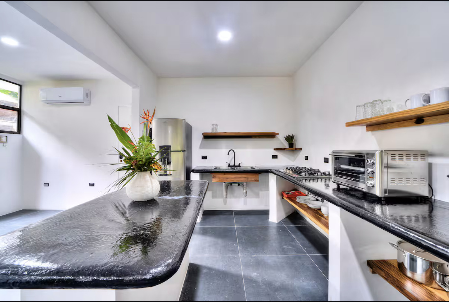Perfectamente ubicado en el corazón de Punta Uva! A solo pasos de una de las playas más hermosas, justo desde su puerta principal, con vistas a la selva para que pueda sumergirse completamente en la abundante vida silvestre del Caribe. ¡Es común ver vida silvestre desde las ventanas de piso a techo! Los espacios para dormir incluyen 2 camas queen y un sofá cama.