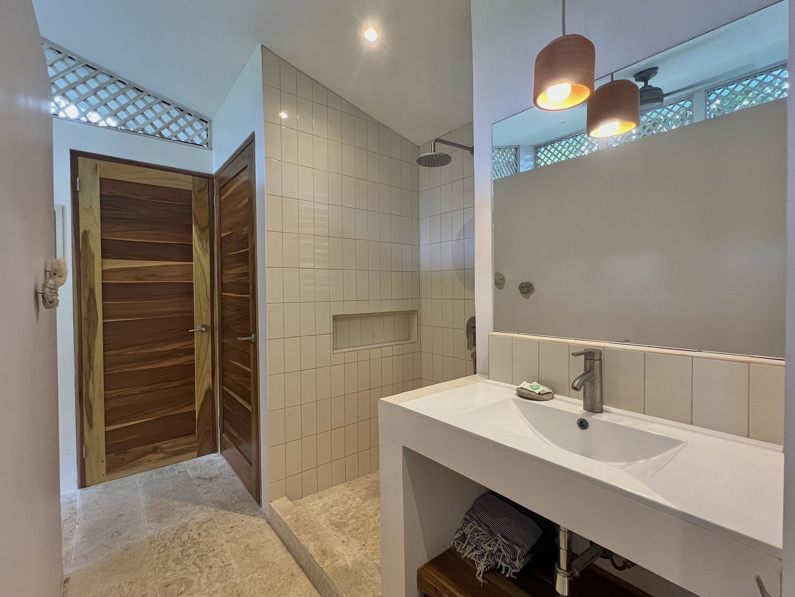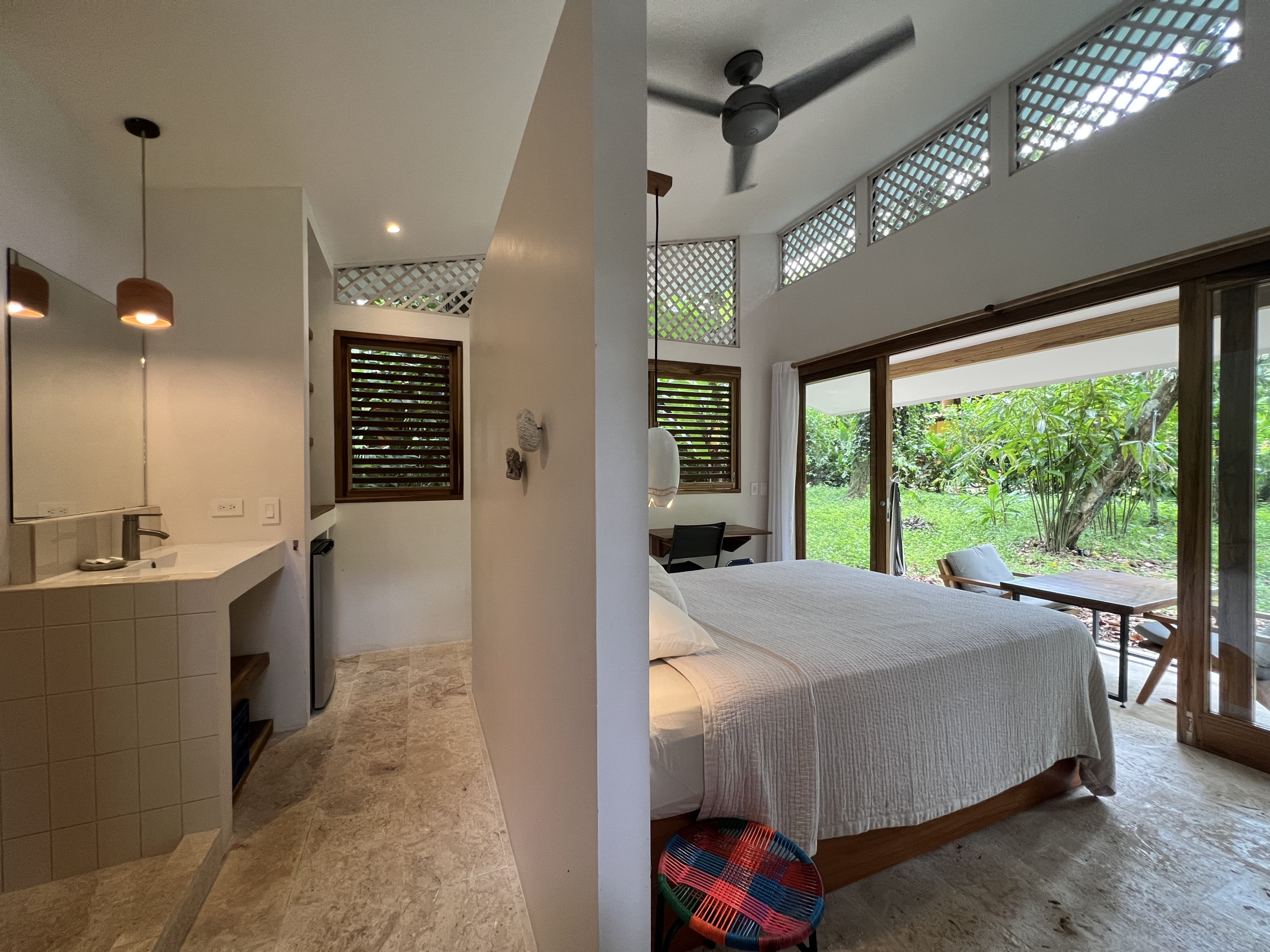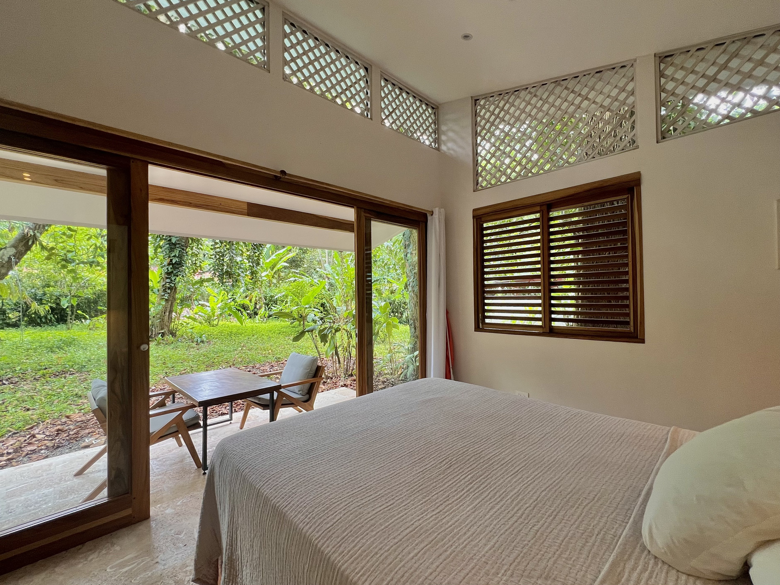 The house offers modern comfort with fiber-optic internet, a small fitness area, and multiple workspaces, perfect for remote workers who want to stay connected in paradise. Just a 10-minute walk away lies Playa Chiquita, one of Costa Rica’s most beautiful beaches, where the jungle meets the sea and coral tide pools invite you to swim. Restaurants, shops, and a supermarket are also within walking distance, and the area is very bicycle-friendly.