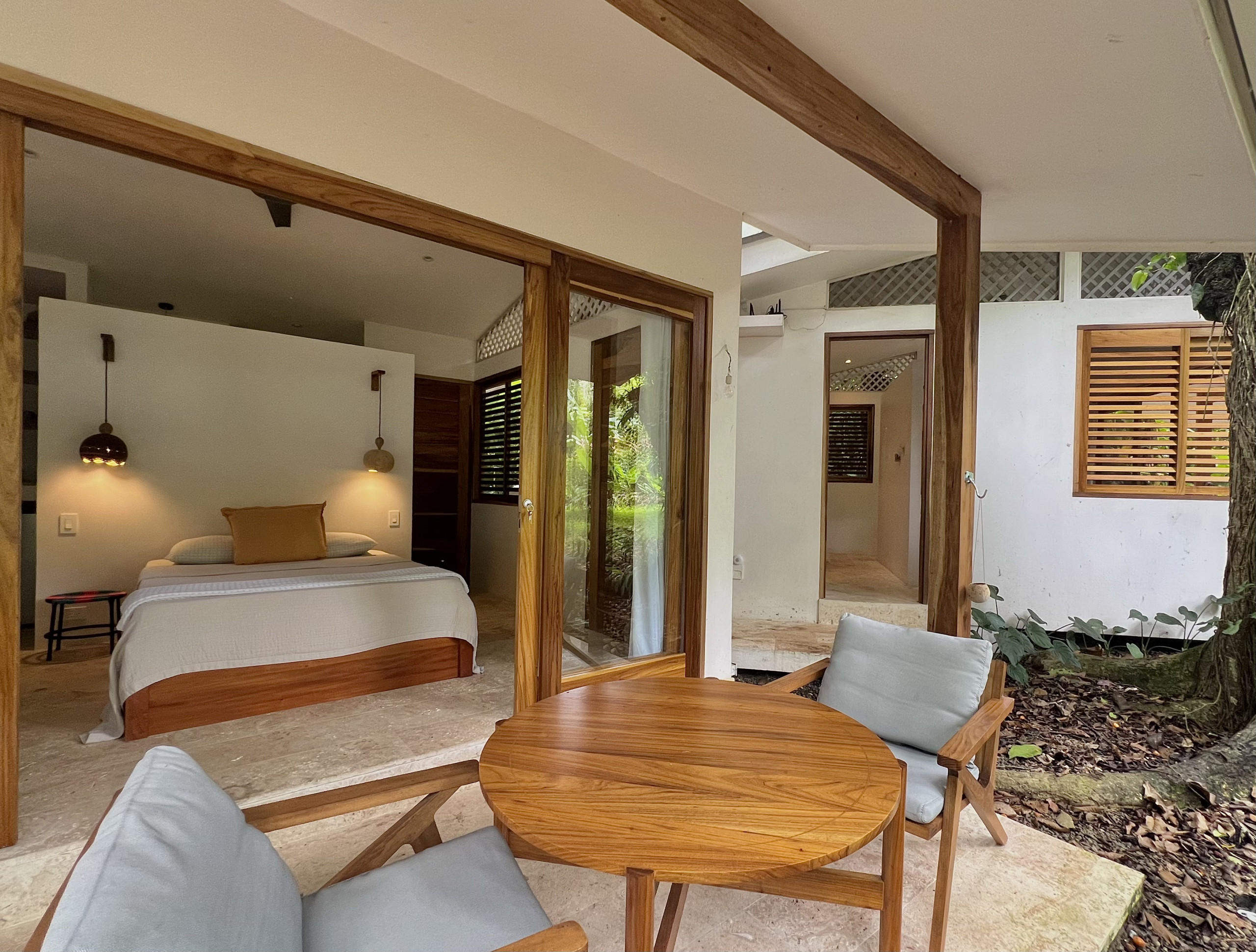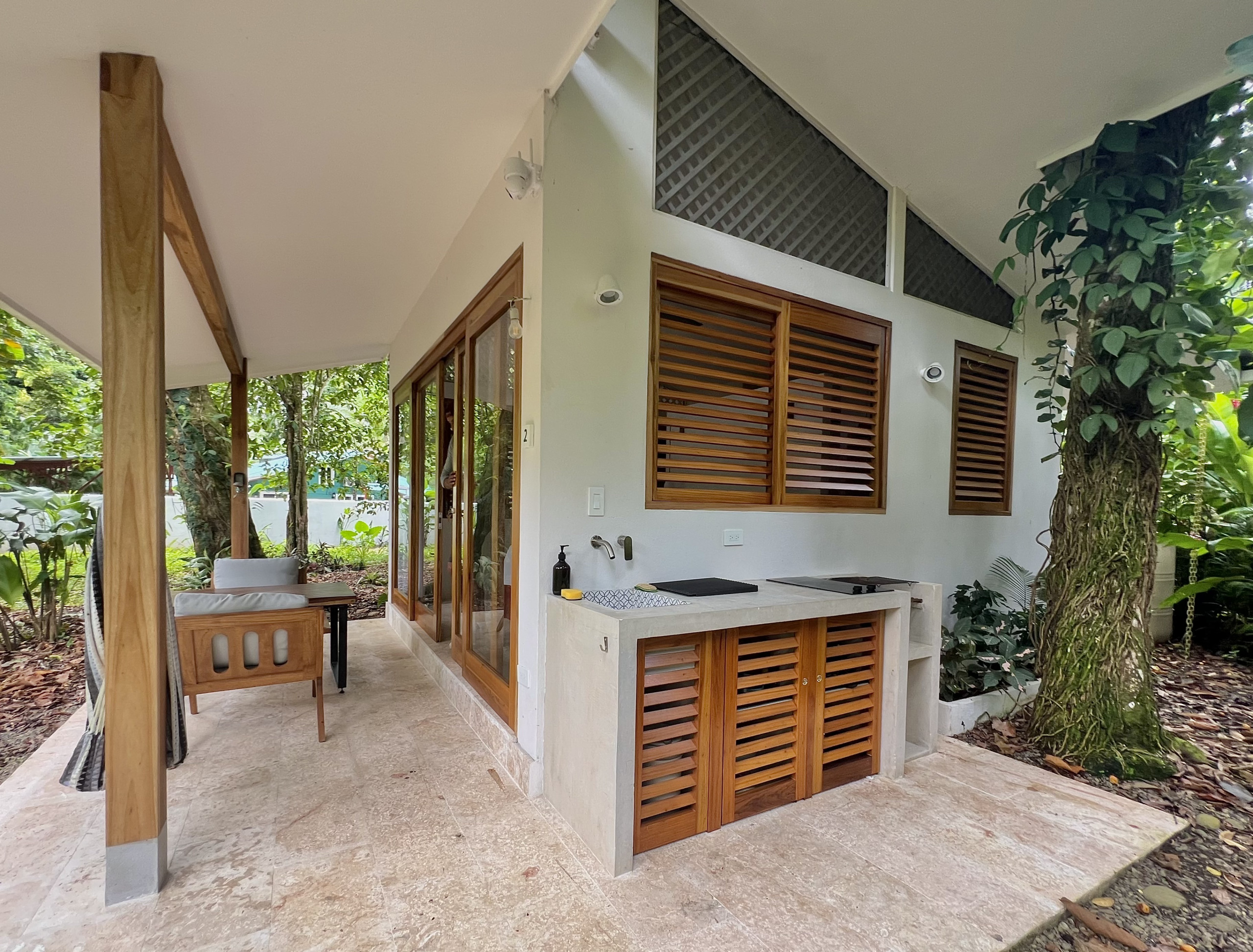 Guests enjoy exclusive use of the entire gated property, featuring a spacious tropical garden, outdoor showers, and secure parking. Whether you’re cooking together in the open-air kitchen, relaxing in a hammock surrounded by greenery, or walking down to Playa Chiquita for a swim, Villa Guaitil is designed for slow living and connection with nature.